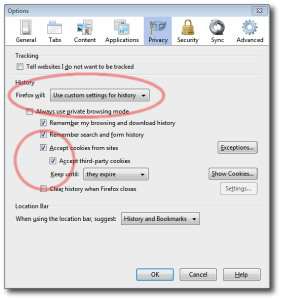 3. In the History section, pull down the list for "Firefox will" and select Use custom settings for history.
