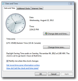 1. On the lower-right corner of your screen you'll see your PC's clock. Double-click on the clock to open the Date and Time control panel. (You can also open this panel from the Start menu, and select the Control Panel.)